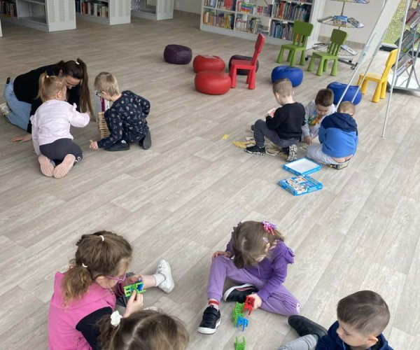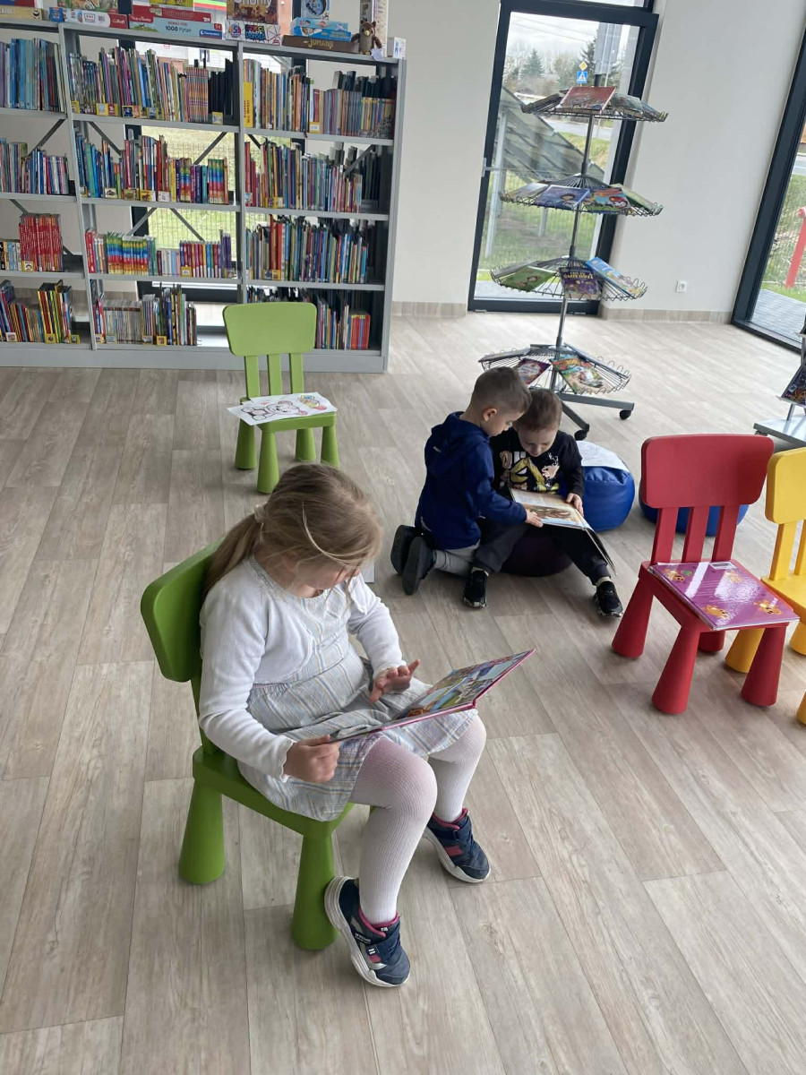 Dzieci z ogromnym zainteresowaniem wysłuchały bajki o przygodach Bluey, przenosząc się w świat wyobraźni, a potem ruszyły na odkrywanie naszej biblioteki - miejsca, które nie tylko wypożycza książki, ale także jest przestrzenią spotkań, kultury oraz wspólnego rozwijania pasji.