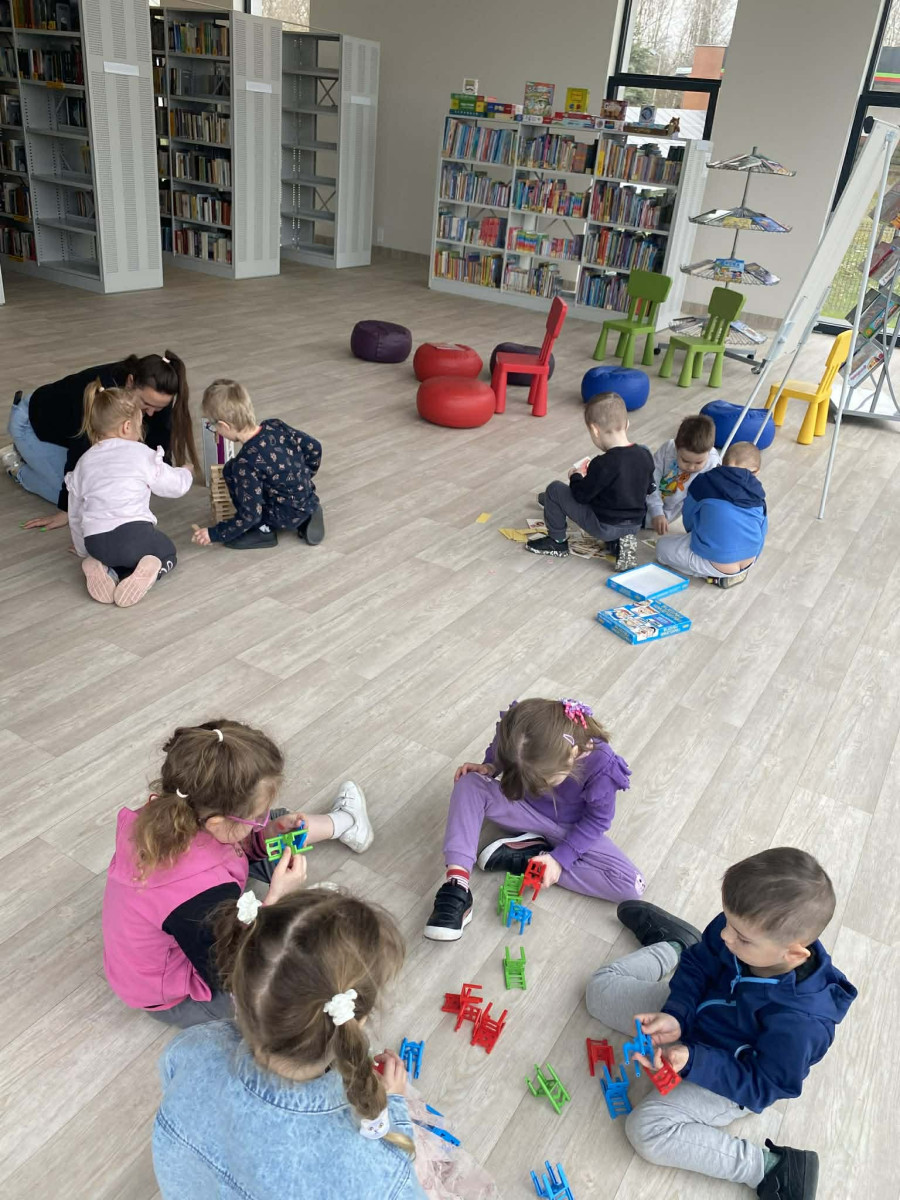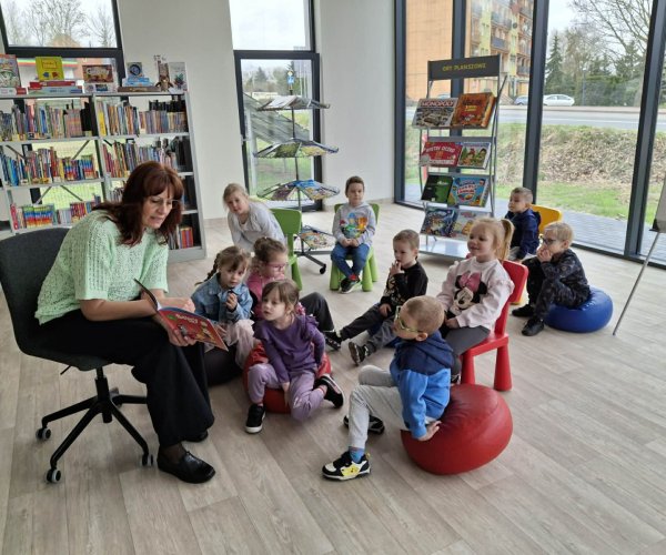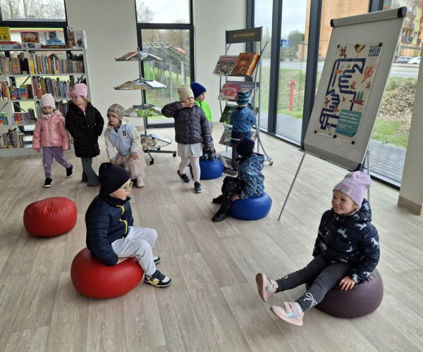 Dzieci z ogromnym zainteresowaniem wysłuchały bajki o przygodach Bluey, przenosząc się w świat wyobraźni, a potem ruszyły na odkrywanie naszej biblioteki - miejsca, które nie tylko wypożycza książki, ale także jest przestrzenią spotkań, kultury oraz wspólnego rozwijania pasji.